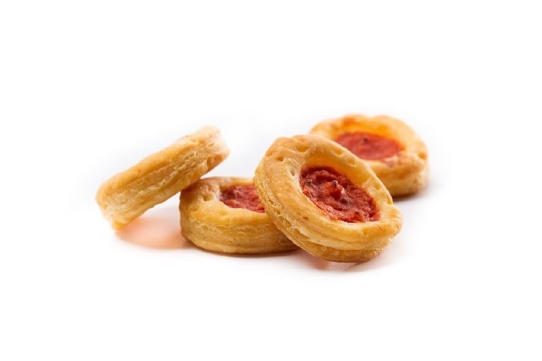 Ingredienti: pasta sfoglia: farina di grano tenero, burro, margarina vegetale, sale, malto, acqua. Farcitura: salsa di pomodoro, formaggi, uova, acqua, olio d'oliva