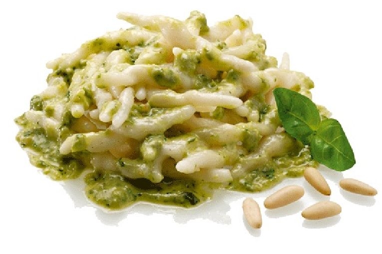 Ingredienti della salsa: basilico (8.5%), pecorino romano, frutta secca in proporzione variabile (pinoli, noci, anacardi), olio di girasole, olio extra vergine di oliva, prezzemolo, Grana Padano, aglio, sale.