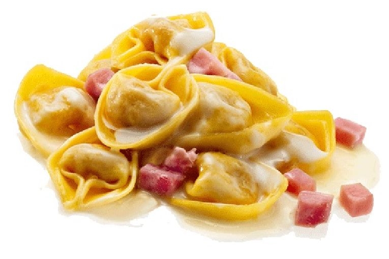 Ingredienti della salsa: latte intero, panna, prosciutto cotto (8%), pinoli, farina di grano tenero tipo "0", margarina, sale. Grana Padano grattugiato grattugiato a guarnizione del piatto.