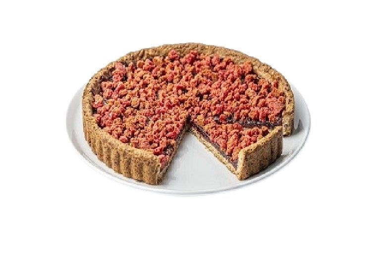 |  |  | | Descrizione | | |  | | Friabile frolla multi cereali con farcituta di fragole (8,8%) e rabarbaro (6,6%), per un gusto deciso e un ottimo bilanciamento tra il dolce della fragola e l'aspro del rabarbaro. Croccante decorazione con crumble di granella di biscotto al succo di barbabietola che le dona la colorazione rossa, per un'estetica originale e accattivante. Palm oil free e certificata vegan. |  | | Scongelare 2/3 ore a temperatura ambiente
