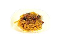 Ingredienti: pasta all'auovo condita con ragù di funghi.
